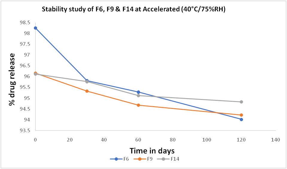 Fig. 12: Stability study of F6, F9 and F14 at accelerated (40 °C/75%RH)