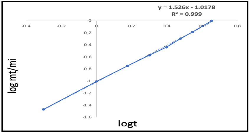 Fig. 16: Korsmeyer-peppas release profile of oral thin film, F6