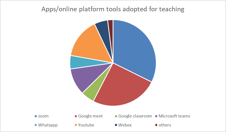 Fig. 2: Chart depicting the Apps/online platform tools adopted for teaching