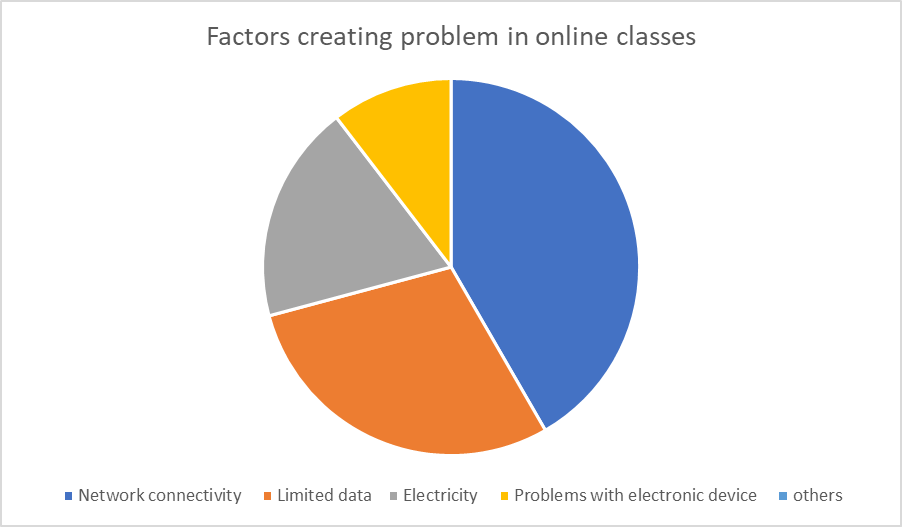 Fig. 4: Chart depicting the several factors creating problems in online classes faced by respondents