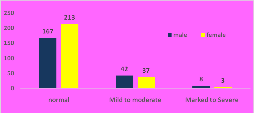 | Gender | Normal | Mild | Moderate | Severe | Total | p-value | |