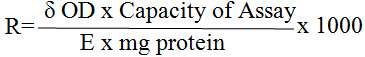 Here R denotes the degree of enzyme action in ‘micro’ mole of acetylthiocholine iodide hydrolysed per minute per mg of protein.