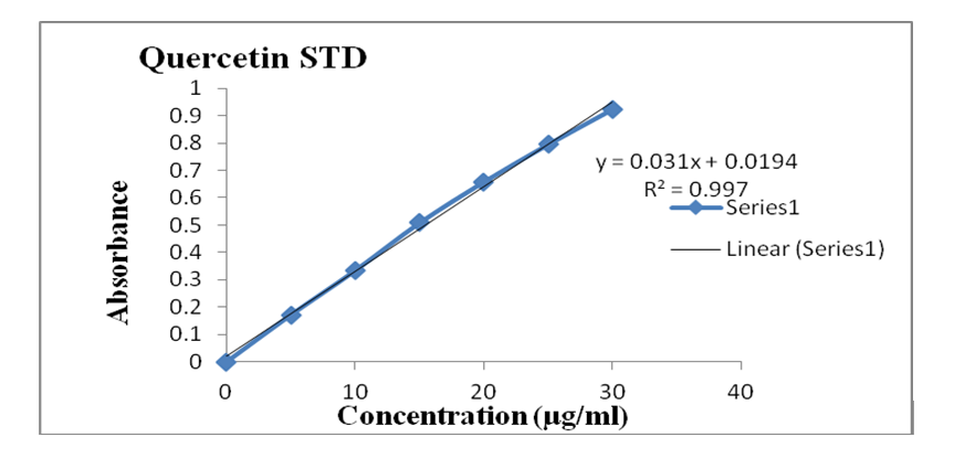 Quercetin was identified by HPTLC study and the Rf value and area was found to be-