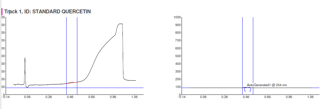 Std. Quercetin: Rf value = 0.46, Area= 718.5