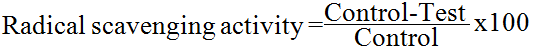 DPPH scavenging effect (%) or Percent inhibition = A0-A 1/A0 × 100.
