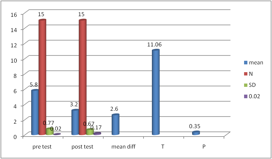 | Post-test VAS (Group A) | 3.2 | 15 | 0.67 | 0.17 | |||