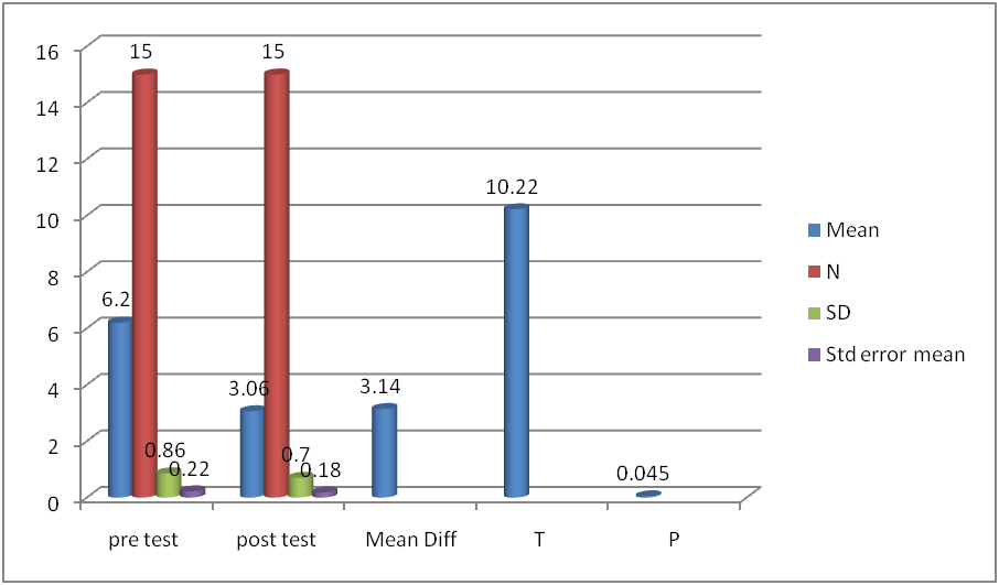 | Pre-test VAS (Group B) | 6.2 | 15 | 0.86 | 0.22 | 3.14 | 10.22 | 0.045 |
