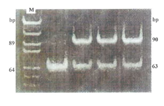 Fig. 1: Restriction fragment length polymorphism (RFLP) detecting ARNT polymorphism and PCR bands