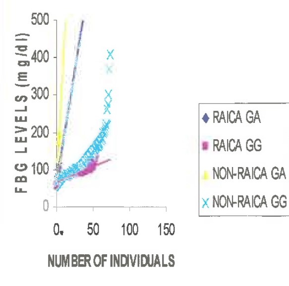 Fig. 2 shows distribution of ARNT genotype alleles among Raica and non-Raica communities. Result shows higher number of non-Raica participants with impaired glucose express ARNT alleles.