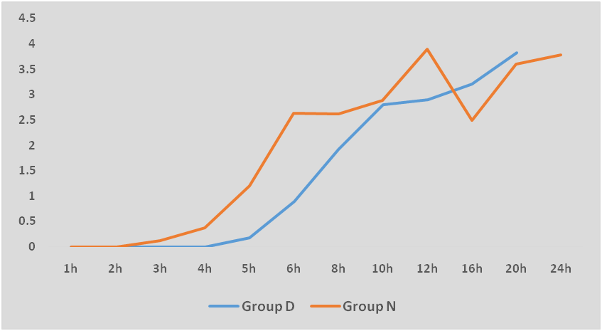 Fig. 5: Comparision of rescue of analgesia in group D and group N