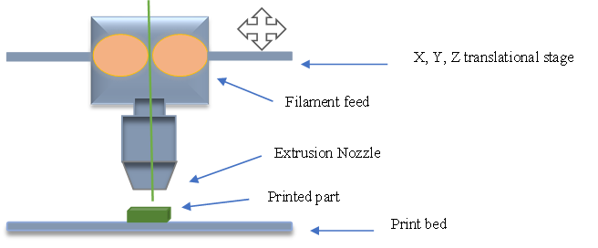 It is a widely employed additive manufacturing technique across various industries for producing three-dimensional prints involves the initial step of importing an STL (Standard Triangle Language, a file that stores information about 3D models generated through a stereolithography CAD program typically developed by 3D Systems into a preprocessing software. The key to enhancing the quality of manufactured objects lies in carefully controlling the four essential parameters of the FDM process, namely: a) Contour count b) Layer thickness c) Raster angle d) Road width [15]. Fused deposition modelling utilizes a heated extrusion nozzle [16]. In FDM, thermoplastic polymers in form of a filament are extruded through the printer head at a specific temperature at definite directions and the semi-molten material is deposited on the build plate to form the layers [17, 18]. The process of FDM can be divided into three stages: (i) molten material extrusion (ii) material layer deposition and (iii) layer solidification [19]. Generally, the initial printing step involves creating the outer layer and subsequently the internal structures are constructed layer by layer. To fill the internal space, an extruded polymer called "infill" is used with the extent of filling determined as needed [20, 21].
