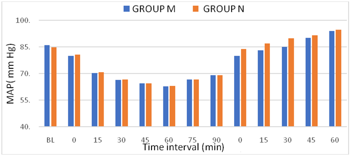 Fig. 1: Comparision of mean arterial blood pressure between the two groups