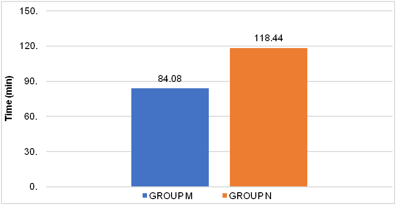 | Duration | Group M (Study group) | Group N (Control group) | p-value |