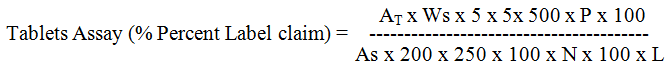 Method precision was determined by performing % Assay or % Label claim of the tablet blend, which is prepared by spiking API (at 100% level) to the placebo equivalent to the tablet weight and extracting as per the sample preparation procedure in triplicate. The percentage assay of each replicate, average of three replicates and % RSD were calculated.