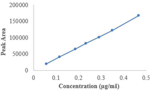 Standard solutions of Cholecalciferol at different concentrations level (25%, 50%, 80%, 100%, 125%, 150% and 200%) were prepared. Calibration curve was constructed by plotting the concentration level of the drug versus the corresponding peak area.