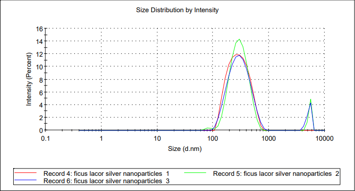 Table 2: Showing size, % intensity, St Dev of ficus lacor-silver nanoparticles
