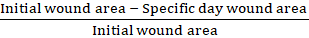 In this study, the effect of Ficus lacor-based silver nanogel activity will be evaluated by measuring wound contraction and epithelialization period. The wound area is measured and marked on days 0, 2, 4, 6, and 8 for all groups. Wound contraction was measured every 2nd day until complete wound healing and represented as a percentage of the healing wound area. Wound contraction was measured as percent contraction and was calculated using the below formula.