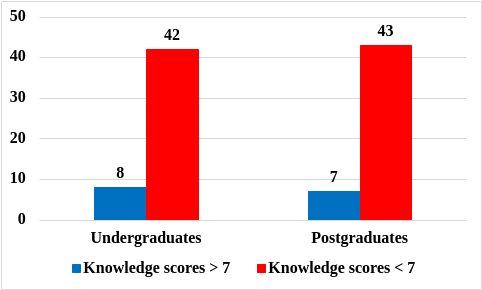 | Graduation | Knowledge scores<7 | Knowledge score>7 | P value | ||