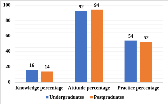 Fig. 5: Knowledge, attitudes, and practices (KAP) domains of UG and PG students regarding Nutrivigilance