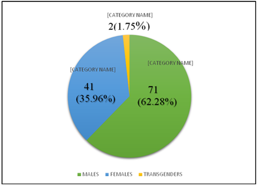 | Age | No. of males | % | No. of female | % | Transgenders | % |
