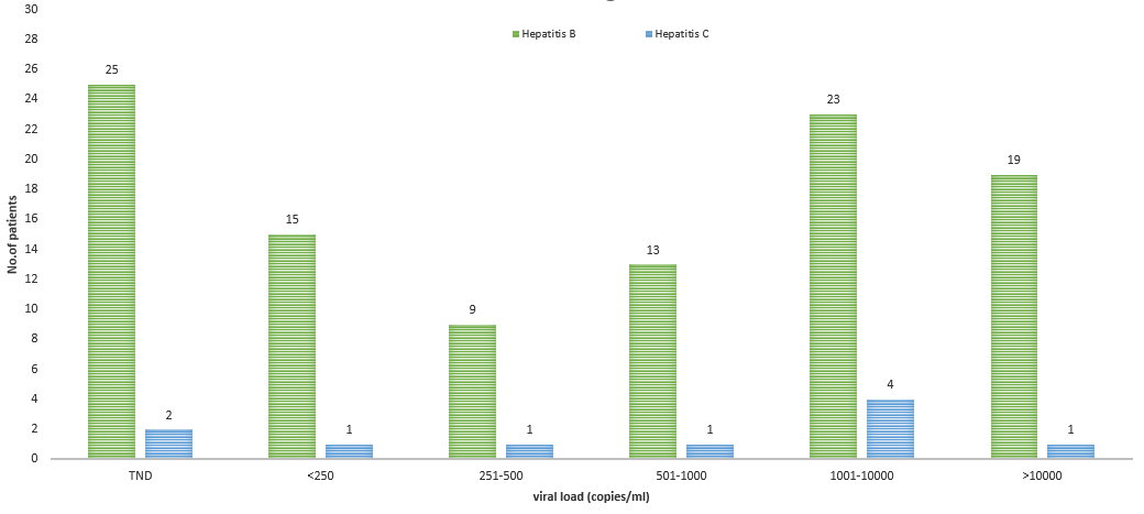 Fig. 2: Bar chart representing the viral load of HIV-HBV and HIV-HCV co-infection