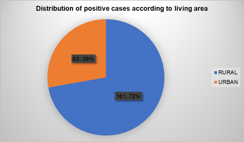 Fig. 3: Distribution of positive cases according to living area (n=223)