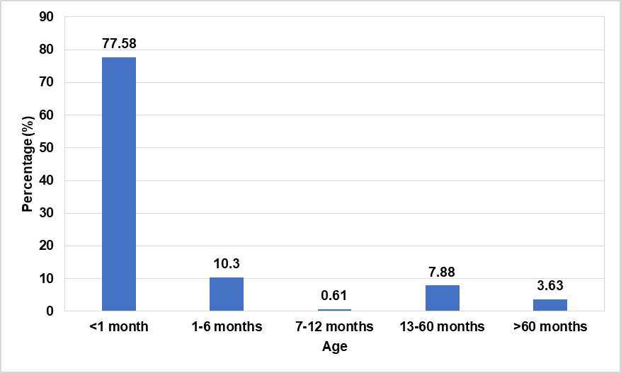 The majority of subjects belonged to<1 month of age (77.58%) (table 1 and fig. 2).