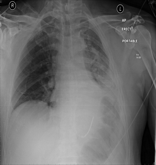 Fig. 4: Chest X-ray showing ventilator-associated pneumonia