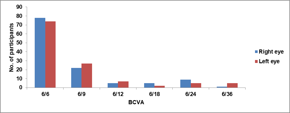 Fig. 1: Distribution of BCVA in each eye among study participants