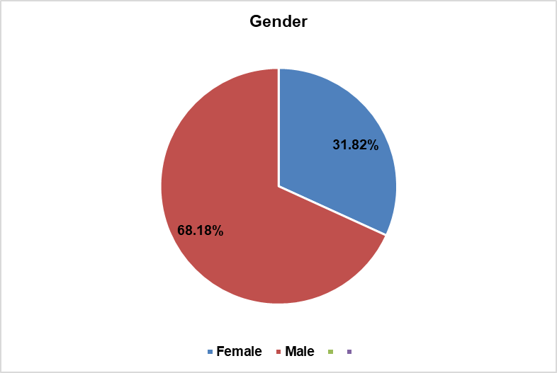 Fig. 2: Gender, in this study, 31.82% were females and 68.18% were males