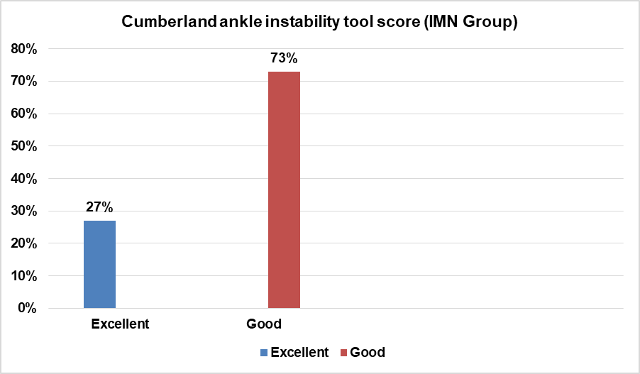 Fig. 5: Cumberland ankle instability tool score (Imn group), in the IMN group the Cumberland Ankle Instability Tool average score of 28, excellent in 27% of patients and good in 73% of patients