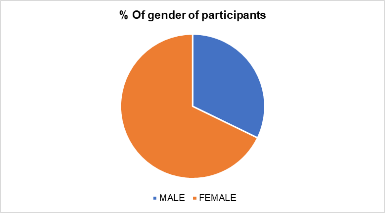 Out of the 250 participants, 13 did not return the forms, and 7 did not fill them; as a result, 230 forms were solely reviewed for outcomes. Among the 230 participants, majority were the females (67.8%).