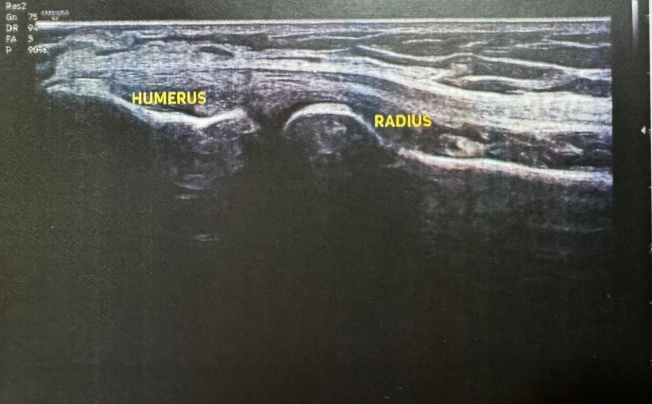 Ultrasonography of right elbow joint