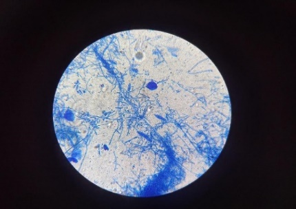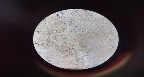 Lactophenol cotton blue tease mount was performed and observed for the presence of hyphal elements reproductive structure like microconidia and macroconidia.