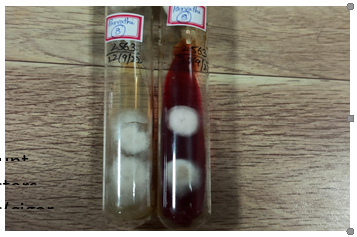 All the specimens were inoculated at different sites on the slants of the SDA with Actidione and dermatophyte test media (DTM), which was used as a selective media. DTM is used to isolate the dermatophytes that could not grow on SDA media. This medium also facilitates the isolation of dermatophytes as pure growth from the bacterial contaminants found in the cutaneous lesions [7] and were incubated in BOD at 25-28 °C.