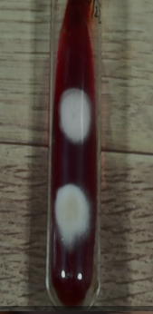 Fig. 11: Colonies of trichophyton rubrum showing characteristic red pigmentation