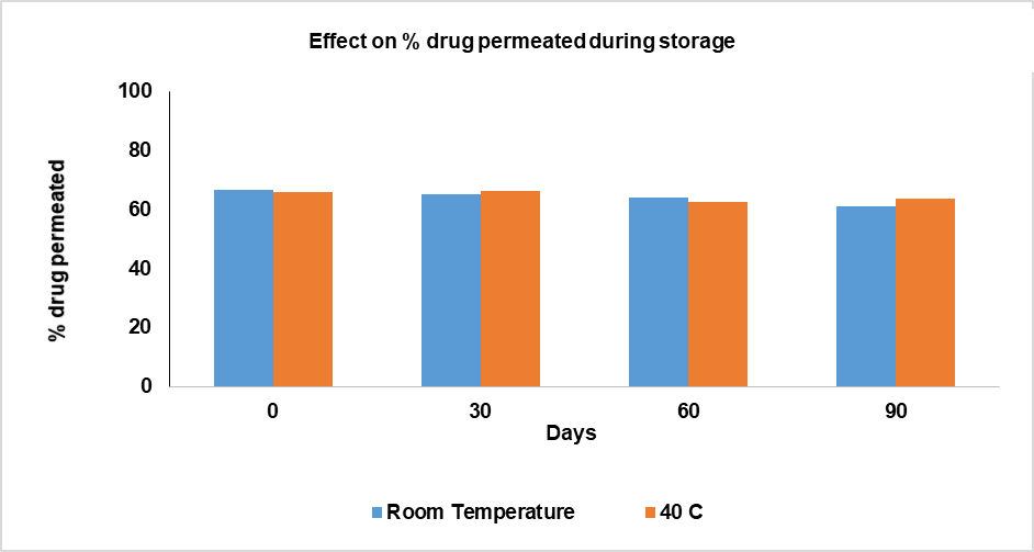 Drug permeation is a rate limiting step for poorly absorbed drug. From the table 1 and fig. 3, Propylene glycol X2 and RIS concentration X1 were found to have a substantial impact on the percentage drug permeation Y3. Propylene glycol X2 being solvent also has permeation enhancement property particularly for the hydrophilic molecules. Propylene glycol could have acted by opening the water channels of the mucosal cell barrier there by increasing the passage of the drug.