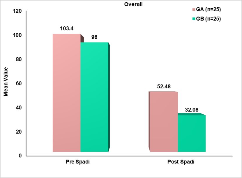 Fig. 1: Comparison of GA Vs GB for pre and post overall