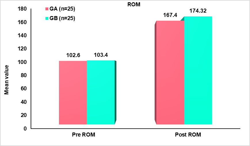 This study showed group B result were found better than group A result as data analysis showed shoulder abduction range of motion of group A mean±SD is 102.60±13.16 and improve to 167.40±6.10 in the post-test. Group B data of shoulder abduction range of motion pretest mean±SD is 103.40±12.31 and improve to 174.32±6.19 in post-post-test.