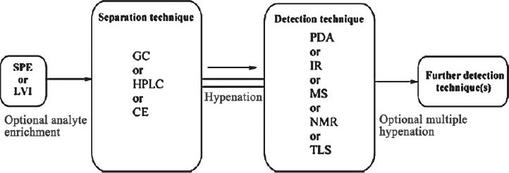 A few decades back, Hirschfeld has used the phrase "hyphenation" to characterize the online combination of a method for separation and several spectroscopy detection techniques. This technique is currently referred to as the hyphenated technique, which was developed through the combination of a method for separation and a spectroscopic detecting technique.