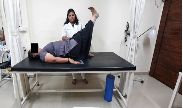 Fig. 1: Back strengthening exercise (Straight leg raise)