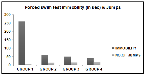Group 1: In this group animals were treated with Normal saline solution in which mice Immobility period was 258±2.986 sec. and numbers of jumps were 2.6±0.378.