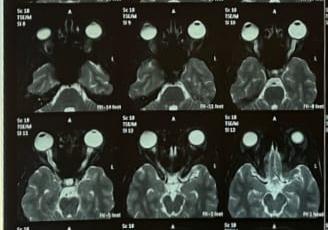 Fig. 1: MRI brain with flattening of posterior sclera and protrusion of optic nerve head