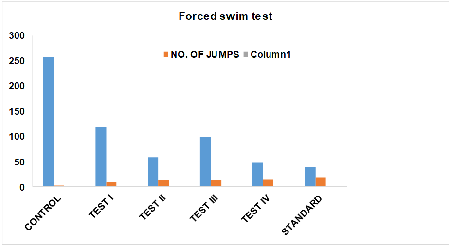 Group 1: In this group animals were treated with Normal saline solution in which mice Immobility period was 246.4±2.966 sec. and numbers of jumps were 2.6± 0.384.