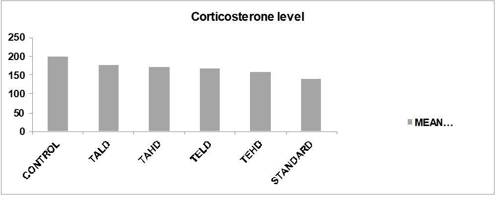 Group 4: In this mice were treated with low dose of Ethanolic extract and corticosterone level is measured which is 166.26±1.28 ng/ml