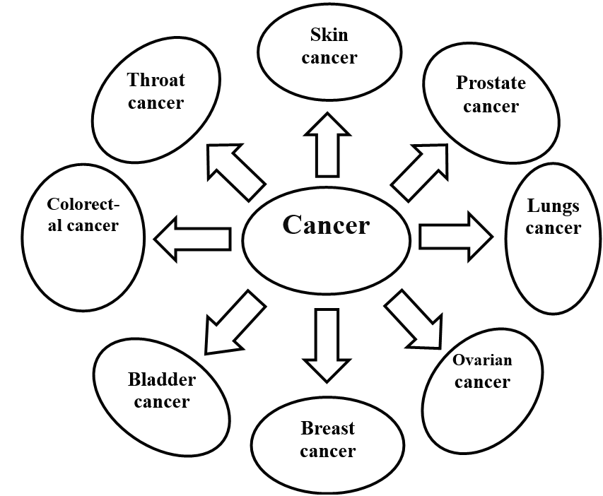 Every year, cancer claims millions of lives and is one of the leading causes of death worldwide. People's lives have been severely impacted by the suffering and high expense of cancer treatment [1]. Alcohol consumption, cigarette smoking, inadequate diet, a lack of physical activity, pollution, and non-communicable diseases are all considered human cancer risk factors. Chronic illnesses such as Epstein-Barr virus, human papillomavirus, hepatitis B, hepatitis C, and H. pylori are also regarded as risk factors for cancer [2]. Cancer is a broad term used to describe a variety of diseases marked by genetic alterations and cellular abnormalities that cause unchecked cell division and the spread of aberrant cells. After heart disease, cancer is the second leading cause of death [3].