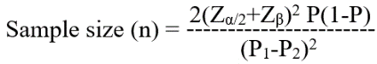 P2 = Assumption of 20% increase in remission after 8 w treatment with combination of Escitalopram and Clonazepam = 81.3% = 0.813