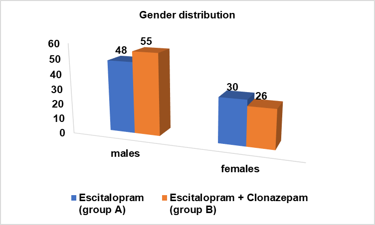 | Escitalopram+Clonazepam (group B) | 55 (67.9%) | 26 (32.1%) |