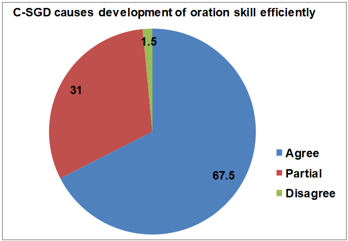 | 1. SGD causes the development of my oration skill efficiently | 67.5 | 31 | 1.5 |