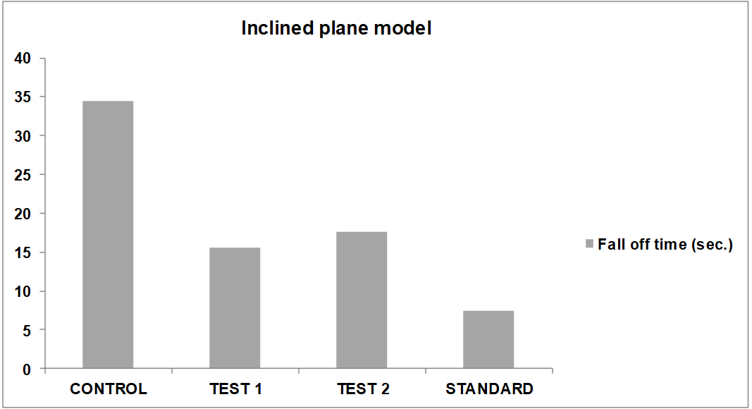 Group 1: In this group, animals were treated with Normal saline solution in which mice fall of time period was 32.28±3.88 sec.
